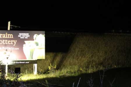 A device, fixture, surface, or structure of any kind, made of any material, displaying letters, numbers, words, text, illustrations, symbols, forms, patterns, colors, textures, shadows, merchandise or lights; or any other illustrative or graphic display designed, constructed, or placed on the ground, on a building, architectural projection, wall, post, or structure of any kind, in a window, or on any other object for the purpose of advertising, identifying or calling visual attention to any place, structure, firm, enterprise, profession, business, service, product, commodity, person, or activity whether located on the site, in any structure on the site or in any other location. The term "placed" includes constructing, erecting, posting, painting, printing, tacking, nailing, gluing, sticking, sculpting, casting, or otherwise fastening, affixing, or making visible in any manner. The term does not include a religious symbol on a place of worship.